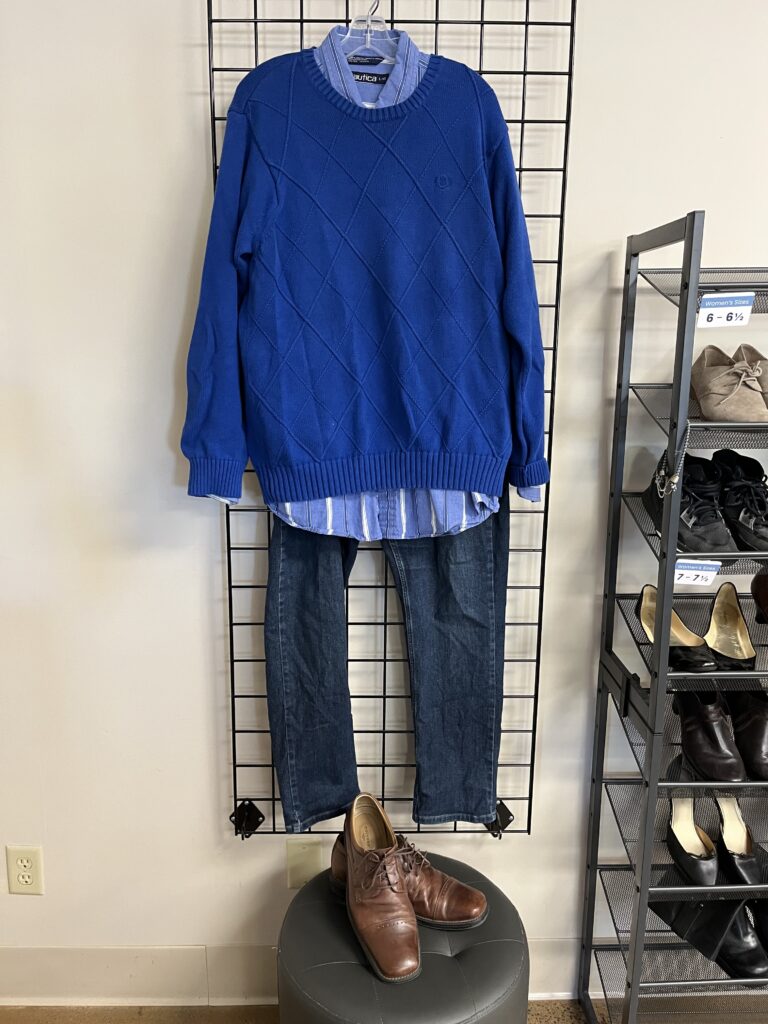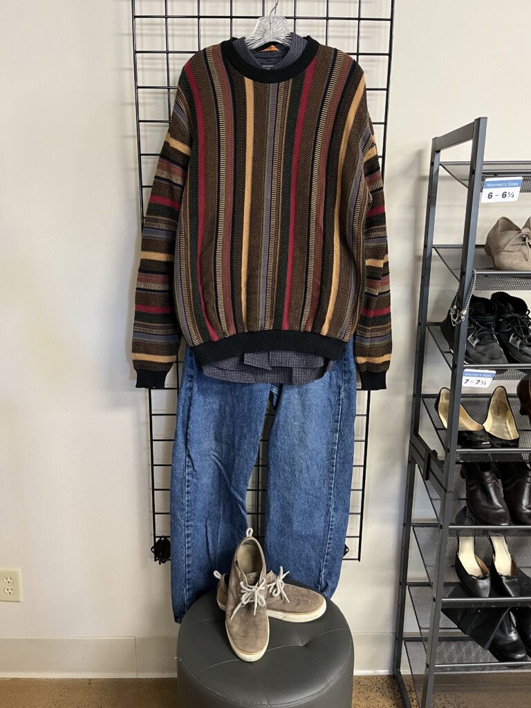 What should I wear? Dressy casual with closed-toe shoes. Think sweater and jeans or dress pants for this cozy fall time of year. Below are some ideas from StyleXchange to help inspire your outfit!